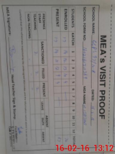 | Attendance Register | Head Teacher | MEA with School | Visit Proof |