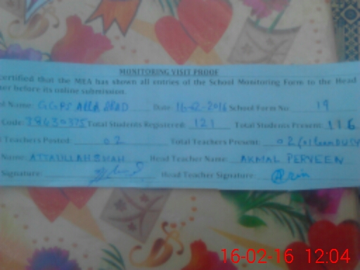 | EMIS Code: 38430375 | Name of School: GGPS ALLAH ABAD | |||