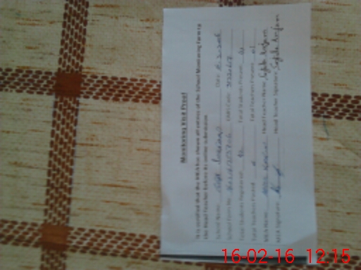 | Monitoring Date: 16-02-2016 | Start Time: 16-02-2016 11:58 AM | End Time: 16-02-2016 12:16 PM | Name of MEA: Ab**** Ka**** | |