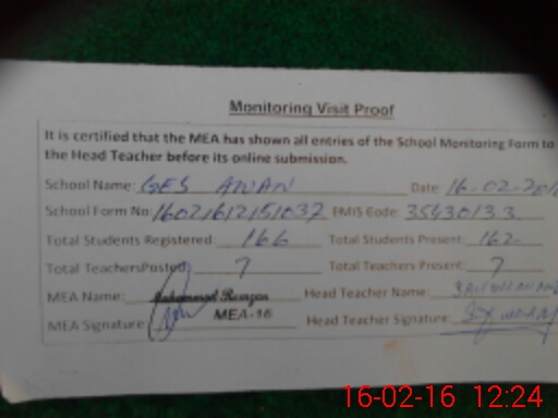| Certified that this School was Inspected by the Undersigned MEA/DMO Today and the Information Stated Above is as Per Record. | |||||