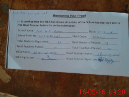 | Attendance Register | Head Teacher | MEA with School | Visit Proof |