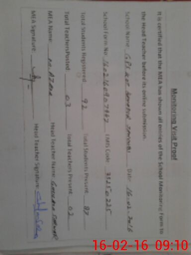 | Certified that this School was Inspected by the Undersigned MEA/DMO Today and the Information Stated Above is as Per Record. | |||||