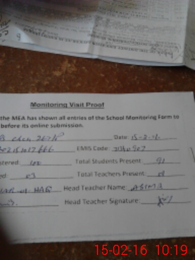| Attendance Register | Head Teacher | MEA with School | Visit Proof |