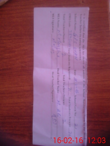 | Attendance Register | Head Teacher | MEA with School | Visit Proof |