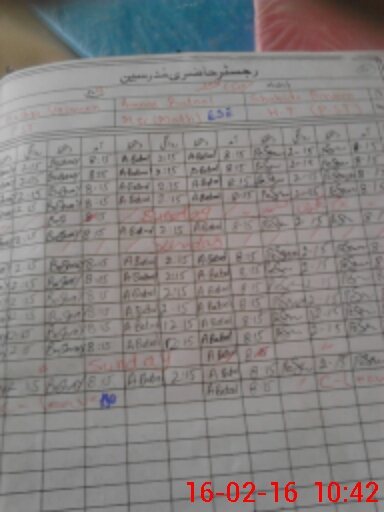 | CNIC | Full Name | Designation | R/C | Absence During Last Calender Month |