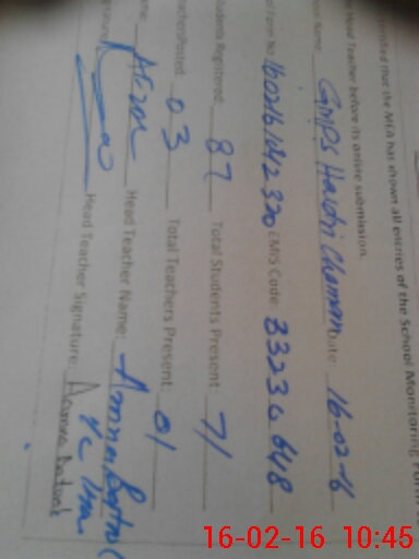 | Name: Ai**** Bi**** Designation: (School Headmaster's/Headmistress's) PST Phone/Cell Number: 03**** |