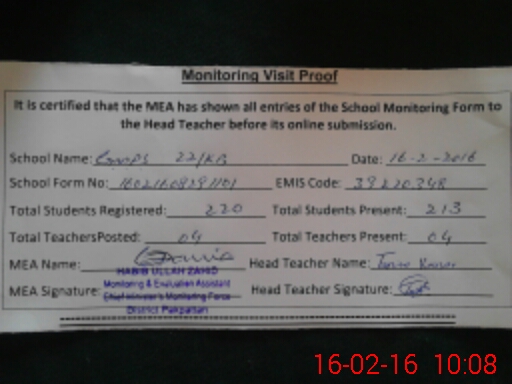 | Certified that this School was Inspected by the Undersigned MEA/DMO Today and the Information Stated Above is as Per Record. | |||||