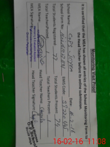 | EMIS Code: 39220445 | Name of School: GPS JOYIA P.O NOORA PATH ARIF WALA | |||