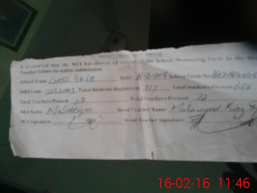 | Certified that this School was Inspected by the Undersigned MEA/DMO Today and the Information Stated Above is as Per Record. | |||||