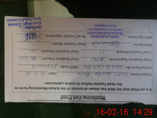 | Certified that this School was Inspected by the Undersigned MEA/DMO Today and the Information Stated Above is as Per Record. | |||||