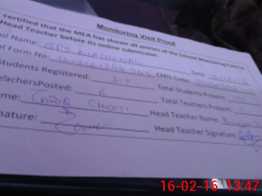 | Attendance Register | Head Teacher | MEA with School | Visit Proof |