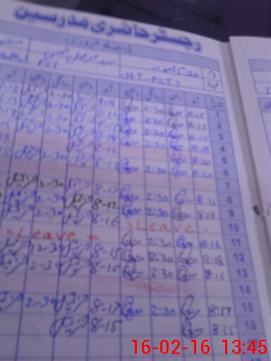 | CNIC | Full Name | Designation | R/C | Absence During Last Calender Month |