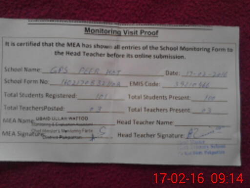 | EMIS Code: 39210466 | Name of School: GPS PIR KOT PAKPATTAN | |||