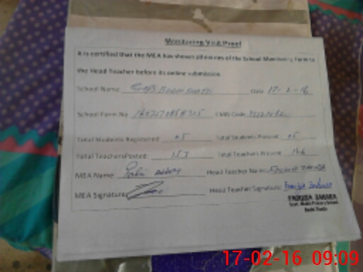 | Attendance Register | Head Teacher | MEA with School | Visit Proof |