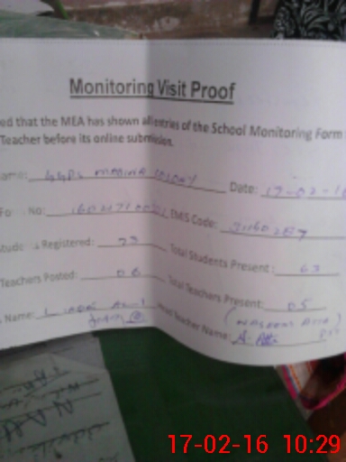 | Certified that this School was Inspected by the Undersigned MEA/DMO Today and the Information Stated Above is as Per Record. | |||||