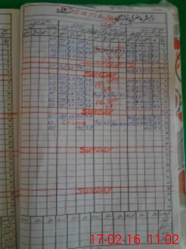 | CNIC | Full Name | Designation | R/C | Absence During Last Calender Month |