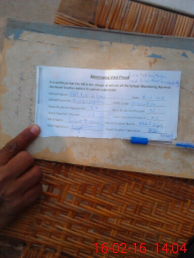 | Attendance Register | Head Teacher | MEA with School | Visit Proof |