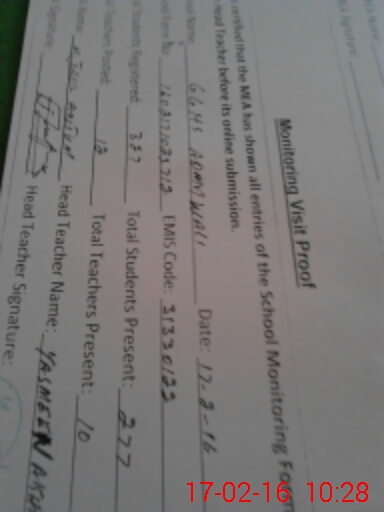 | Certified that this School was Inspected by the Undersigned MEA/DMO Today and the Information Stated Above is as Per Record. | |||||