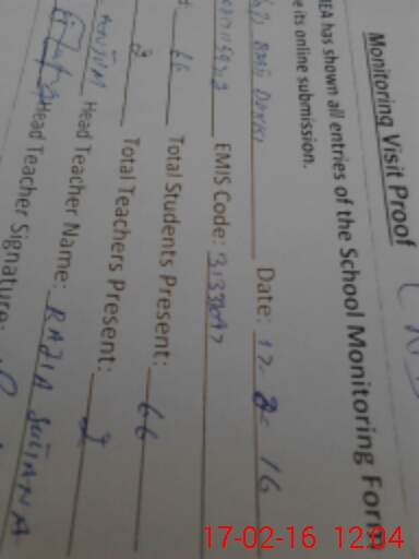 | Certified that this School was Inspected by the Undersigned MEA/DMO Today and the Information Stated Above is as Per Record. | |||||