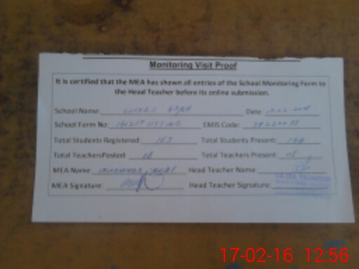 | Attendance Register | Head Teacher | MEA with School | Visit Proof |