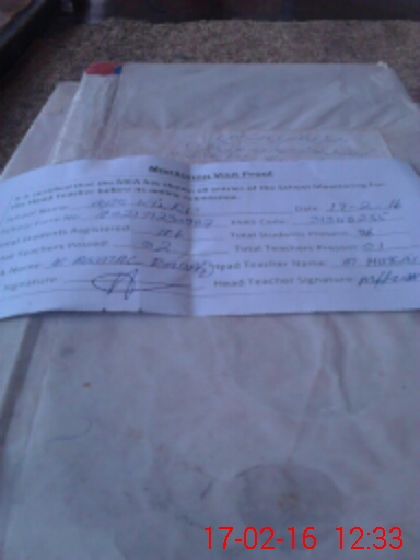 | Attendance Register | Head Teacher | MEA with School | Visit Proof |