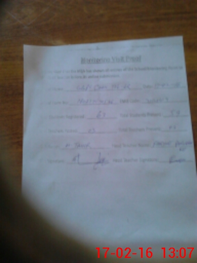 | Attendance Register | Head Teacher | MEA with School | Visit Proof |