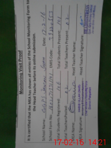 | EMIS Code: 39220553 | Name of School: GGPS JAMAN SHAH | |||