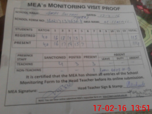 | Certified that this School was Inspected by the Undersigned MEA/DMO Today and the Information Stated Above is as Per Record. | |||||
