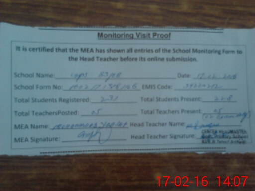 | Certified that this School was Inspected by the Undersigned MEA/DMO Today and the Information Stated Above is as Per Record. | |||||
