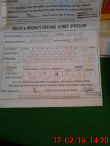 | Certified that this School was Inspected by the Undersigned MEA/DMO Today and the Information Stated Above is as Per Record. | |||||
