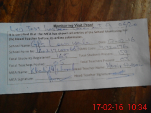 | EMIS Code: 31320176 | Name of School: GPS LOWN WALA | |||