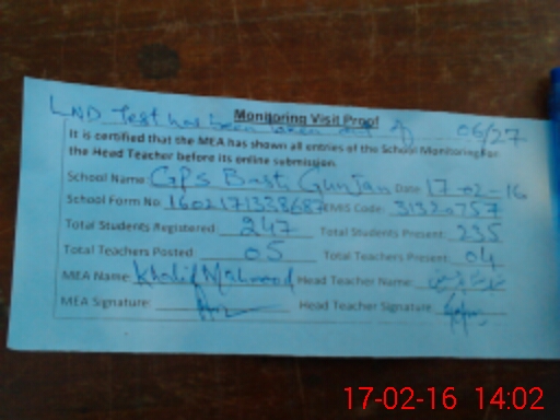 | EMIS Code: 31320757 | Name of School: GPS BASTI GUNJAN | |||