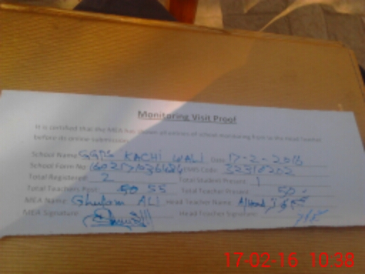 | EMIS Code: 32310202 | Name of School: GGPS KACHI WALI | |||