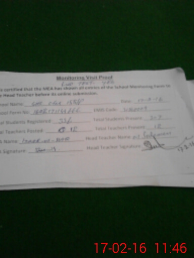 | Attendance Register | Head Teacher | MEA with School | Visit Proof |
