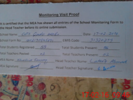 | EMIS Code: 31320279 | Name of School: GPS QADU WALI (MOUDIB) | |||