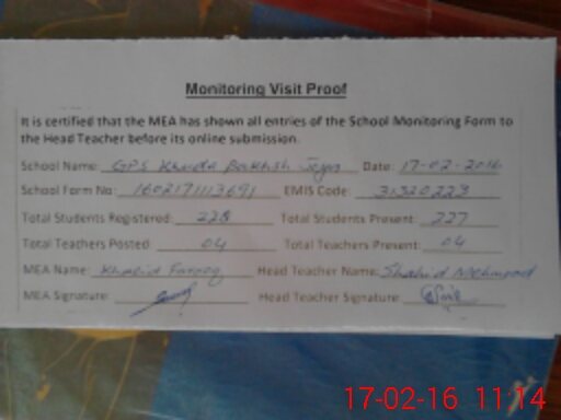 | EMIS Code: 31320223 | Name of School: GPS KHUDA BUKSH JOIYA | |||