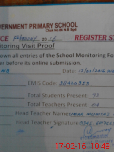 | EMIS Code: 38420353 | Name of School: GPS CHAK NO.86 NB | |||