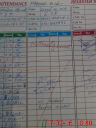 | CNIC | Full Name | Designation | R/C | Absence During Last Calender Month |