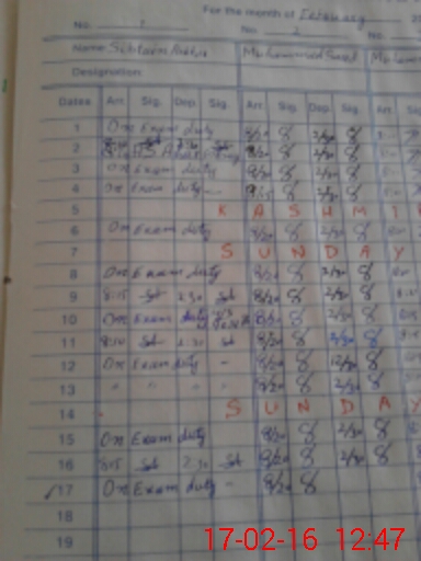 | 38**** | Mu**** Si**** Ak**** | PTC | 0 | 0 | 0 | 0 | 0 | 0 | 0 | 0 | 0 | Exam Duty | |