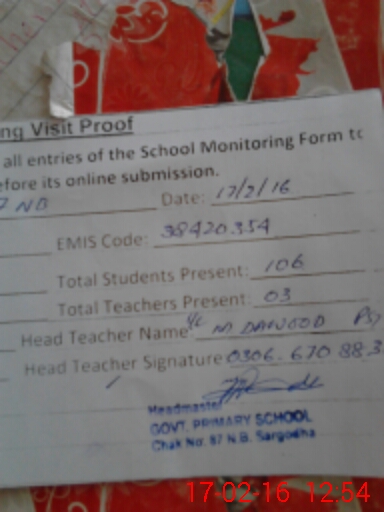 | EMIS Code: 38420354 | Name of School: GPS CHAK NO.87 NB | |||