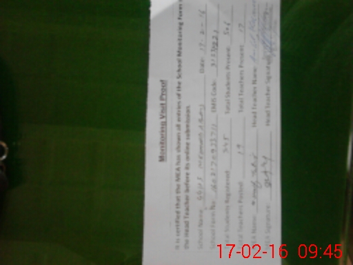 | Attendance Register | Head Teacher | MEA with School | Visit Proof |