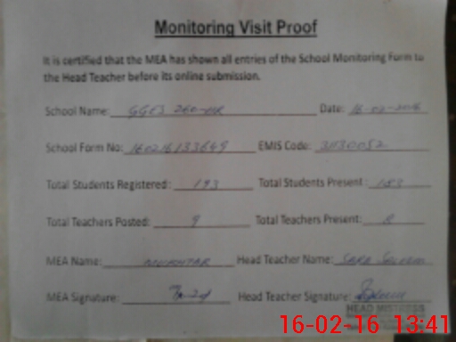 | Attendance Register | Head Teacher | MEA with School | Visit Proof |