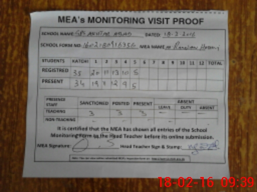 | Attendance Register | Head Teacher | MEA with School | Visit Proof |