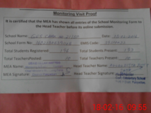 | EMIS Code: 39210032 | Name of School: GHS CHAK NO. 21/SP | |||