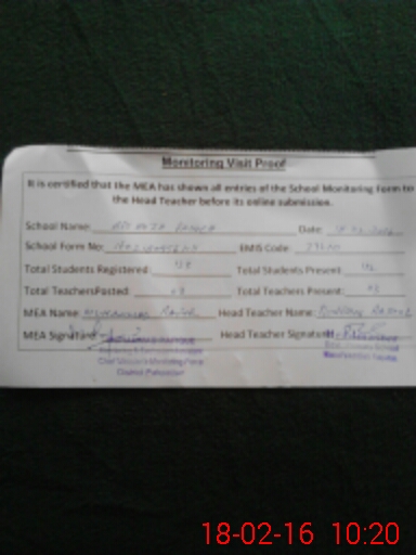 | Certified that this School was Inspected by the Undersigned MEA/DMO Today and the Information Stated Above is as Per Record. | |||||