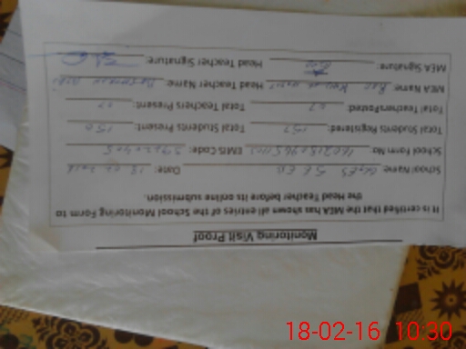 | Monitoring Date: 18-02-2016 | Start Time: 18-02-2016 09:45 AM | End Time: 18-02-2016 10:30 AM | Name of MEA: Kh**** Ha**** (R**** | |