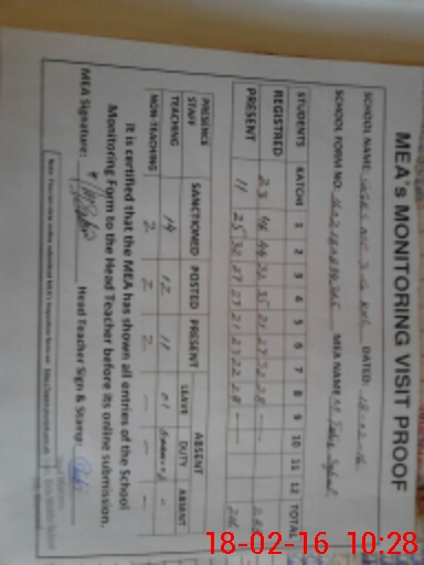 | Certified that this School was Inspected by the Undersigned MEA/DMO Today and the Information Stated Above is as Per Record. | |||||
