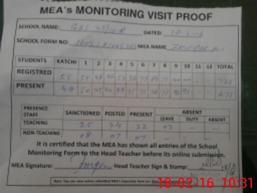 | Certified that this School was Inspected by the Undersigned MEA/DMO Today and the Information Stated Above is as Per Record. | |||||