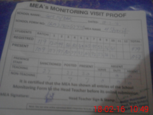 | Certified that this School was Inspected by the Undersigned MEA/DMO Today and the Information Stated Above is as Per Record. | |||||
