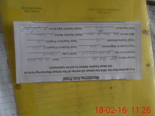 | Attendance Register | Head Teacher | MEA with School | Visit Proof |